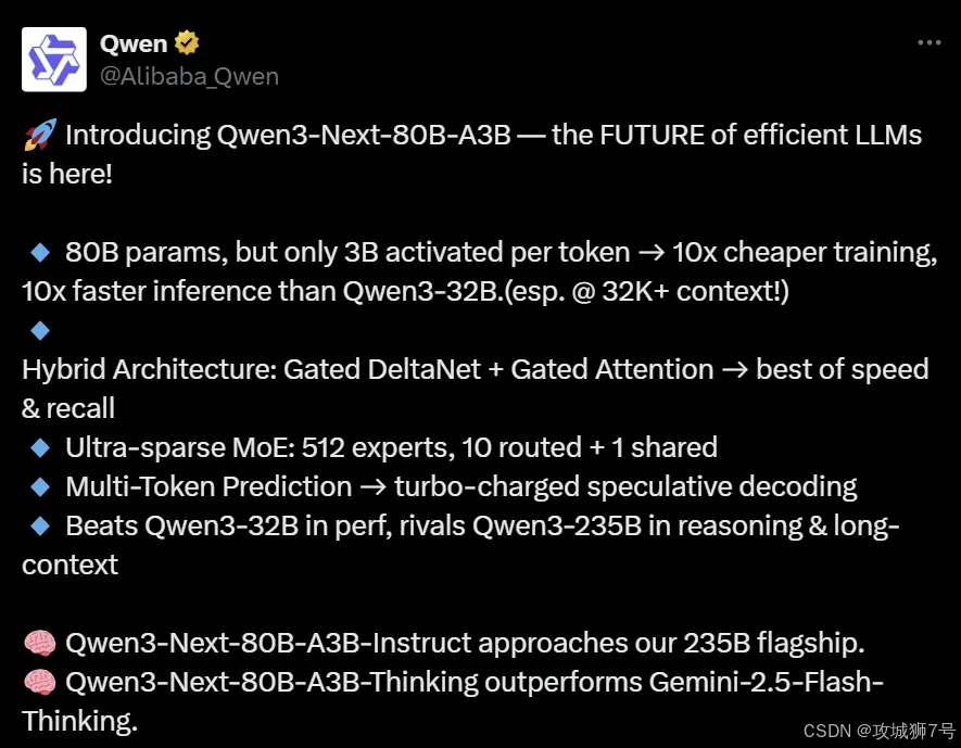 ⛳️ 此篇文章主要介绍 阿里开源Qwen3-Next的子系列模型