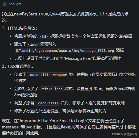 视觉理解准确:它精确地识别出了页面上所有的主要模块,并按照正确的顺序生成了骨架代码。连中英文混合的“找到您的报告”区域也完美识别。它甚至会在原来项目的基础上找到可以利用的UI图标。