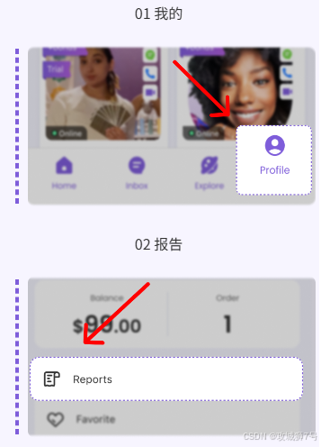 局部样式不符,也可以提供具体UI样式代码给Doubao-Seed-Code 修改接口,比如如下的01 我的,02 报告样式和设计稿严重不符,可以进行如下提示词提问: