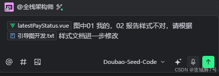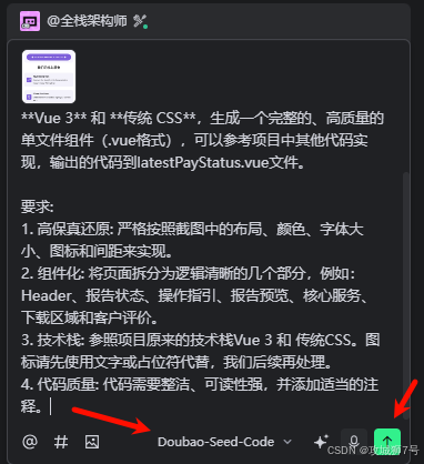 首先,我将设计稿截图和我的核心需求一次性地、清晰地告诉Doubao-Seed-Code。