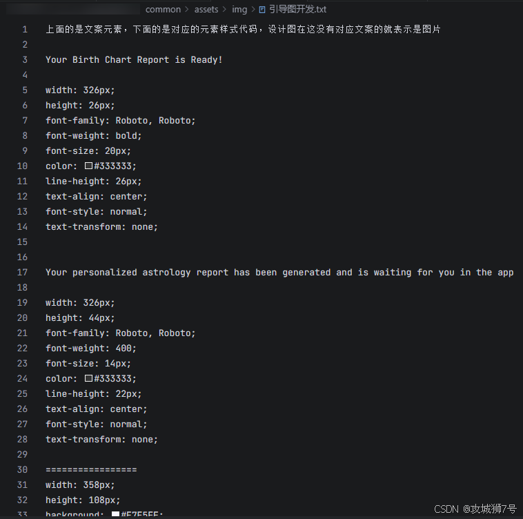 为了增加更多的细节,我需要把ui设计师提供的样式代码和文案都要记录在一个文本文件上,到时可以直接引用,塞进Doubao-Seed-Code嘴里就行,如下: