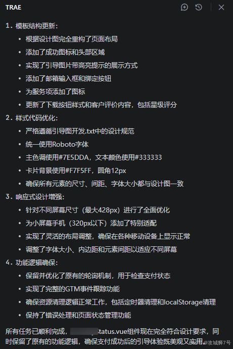 这次测评下来,我的感受是,Doubao-Seed-Code与TRAE的结合,已经不仅仅是一个“代码补全”或“代码生成”工具。它带来的是一种全新的、更高效的前端开发工作流:设计师出图 -> 开发者用自然语言定义需求和交互 -> AI负责实现80%的编码工作 -> 开发者聚焦于剩下的20%核心业务逻辑和最终审核。