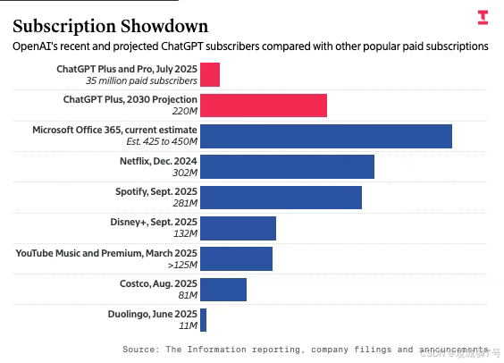这个数字是什么概念?它意味着ChatGPT的付费用户规模将比肩甚至超越今天花了十几年才积累起庞大用户的Netflix和Spotify。这是一个数字化时代少有的宏大愿景。然而,当我们将目光从星辰大海拉回到现实的商业报表和市场竞争格局时,会发现这条通往帝国的道路,远比想象中要崎岖得多。