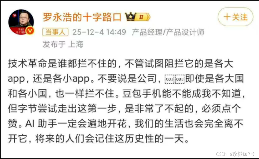豆包手机助手的诞生及其引发的争议,是 AI 发展史上的一个标志性事件。它第一次将“AI 代理”这个过去仅存在于技术圈的概念,以一种极具冲击力的方式,推到了所有手机用户和 App 厂商的面前。