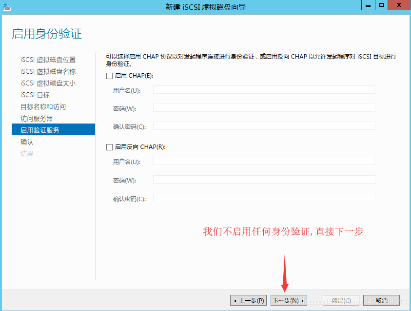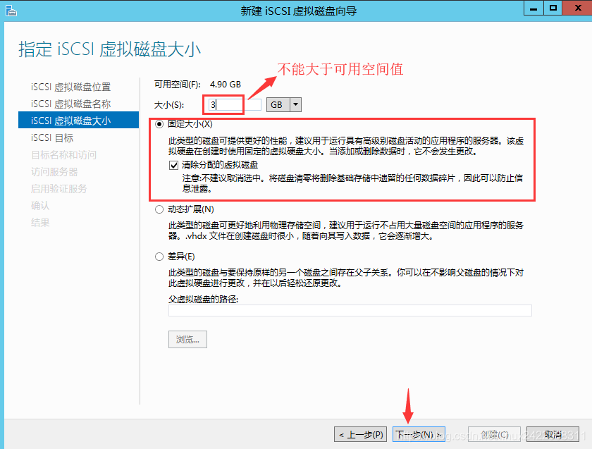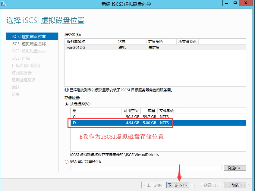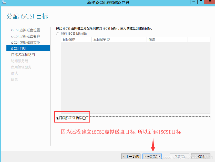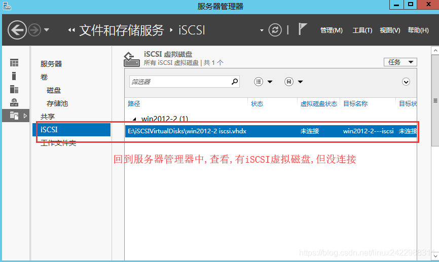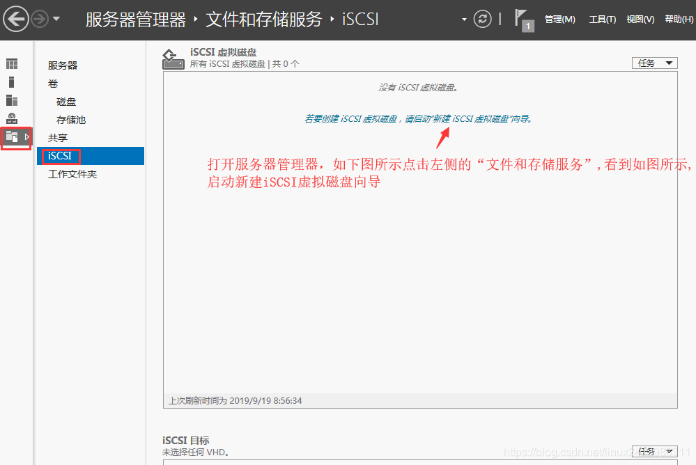 安装好iSCSI目标服务器角色组件后,我们就可以开始建立iSCSI虚拟磁盘了。