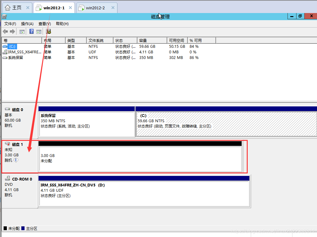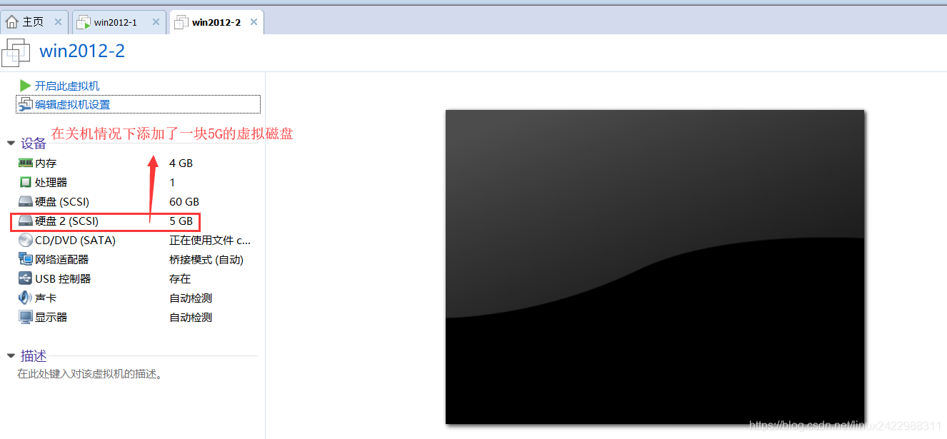 咱们给win2012-2添加一块5G的虚拟磁盘