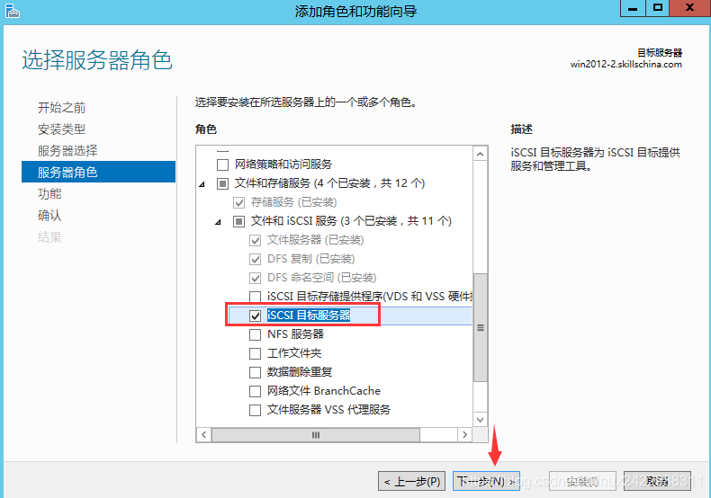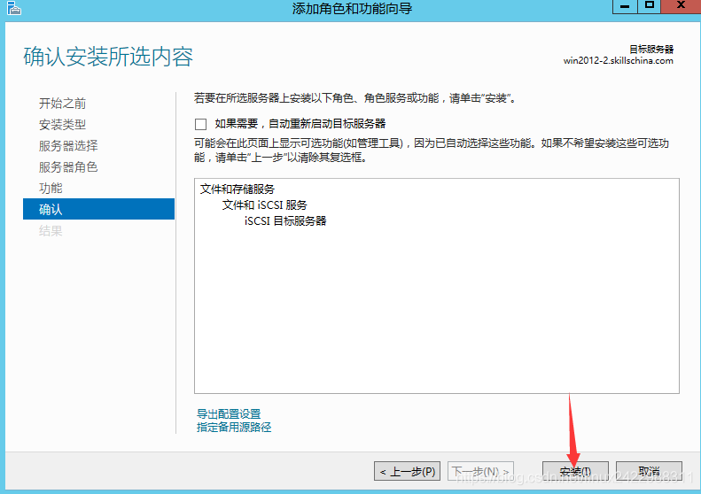 安装iSCSI目标服务器角色组件,这个比较简单,所以就一笔带过.没解释操作步骤.