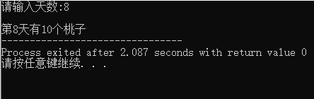 return (peach(day+1)+1)*2; //为什么day要+1?因为第9天的桃子,是第10天数量+1个的2倍