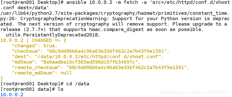 实验(在10.0.0.1上用ansible控制10.0.0.2):