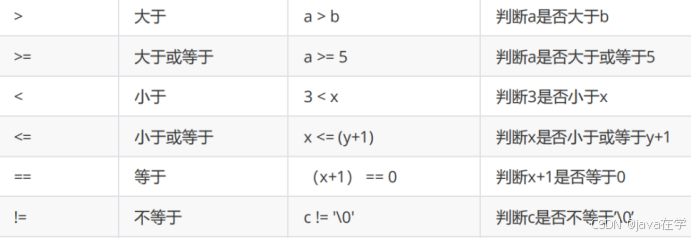 注意:关系运算符用于判断运算符两边的表达式是否满足给定的大小条件