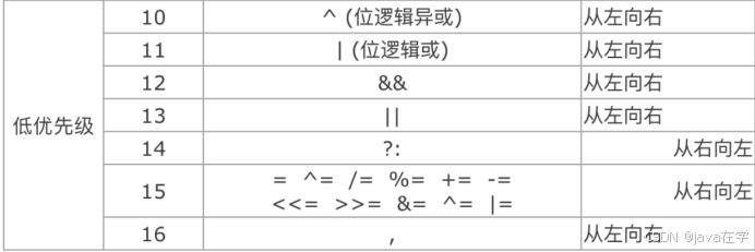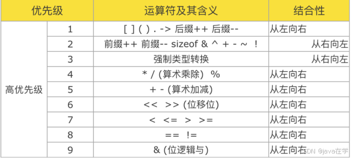 当表达式中出现多个相同优先级的运算符时,更具结合性决定谁先运行,比如从左到右