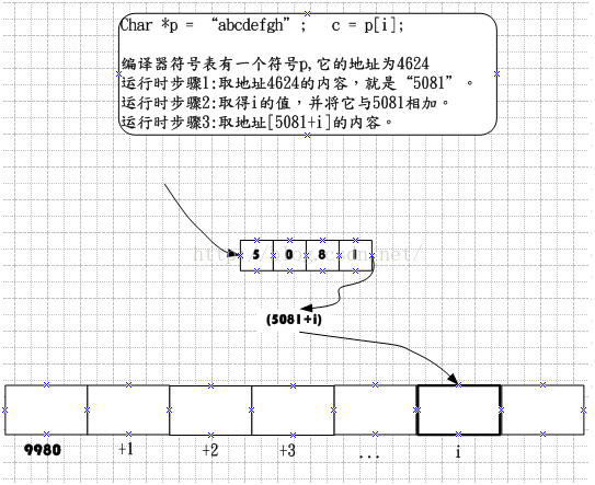 间接访问,首先取得指针的内容,把它作为地址,然后从这个地址提取数据。 如果指针有一个下标[i],就把指针的内容加上i作为地址,从中取出数据。 |