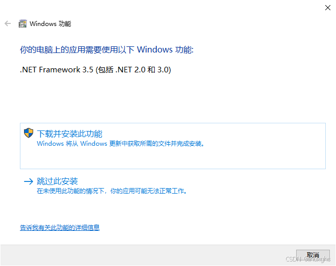 安装过程中需要下载“.NET Framework 3.5(包括.NET 2.0和3.0)” ,很快下载好。