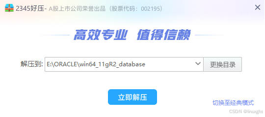 我的操作方法是解压到win64_11gR2_database文件夹,如下: