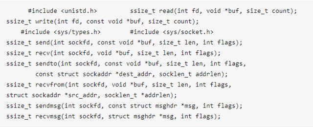 read()/write()recv()/send()readv()/writev()recvmsg()/sendmsg()recvfrom()/sendto()