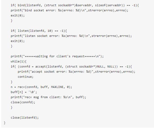 listen函数的第一个参数即为要监听的socket描述字,第二个参数为相应socket可以排队的最大连接个数。socket()函数创建的socket默认是一个主动类型的,listen函数将socket变为被动类型的,等待客户的连接请求。