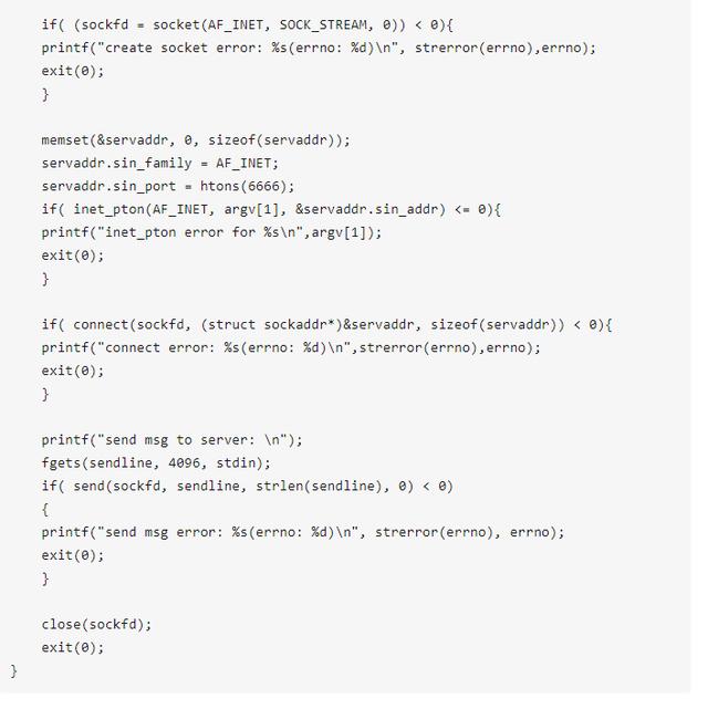 其它的我就不一一介绍这几对I/O函数了,具体参见man文档或者baidu、Google,下面的例子中将使用到send/recv。