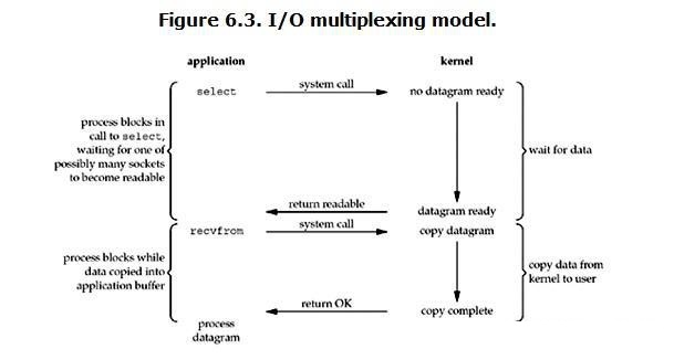 这里“多路”指的是多个网络连接,“复用”指的是复用同一个线程。采用多路I/O