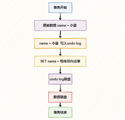 事务执行update X set name = 程序员内点事 where id =1语句时,先会在undo log中记录一条相反逻辑的update X set name = 小富 where id =1记录,这样当某些原因导致服务异常事务失败,就可以借助undo log将数据回滚到事务执行前的状态,保证事务的完整性。