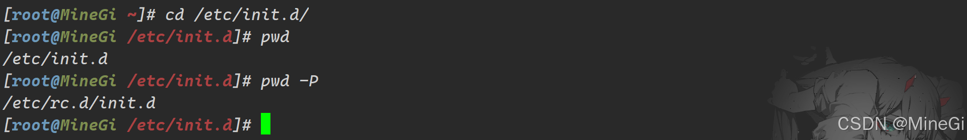 [root@MineGi /etc/init.d]# pwd -P