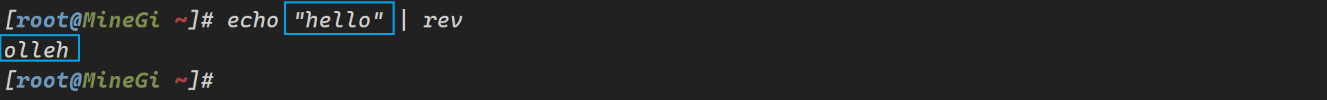 [root@MineGi ~]# echo "hello" | rev