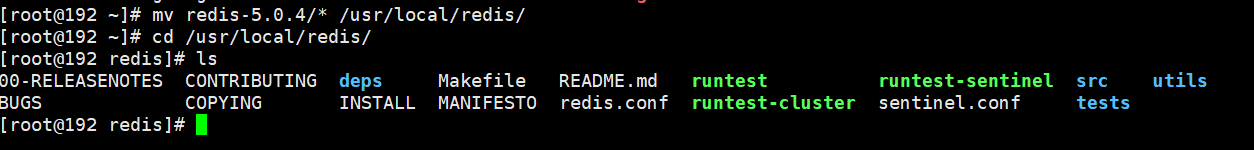 - 输入:mv redis-5.0.4/* /usr/local/redis/