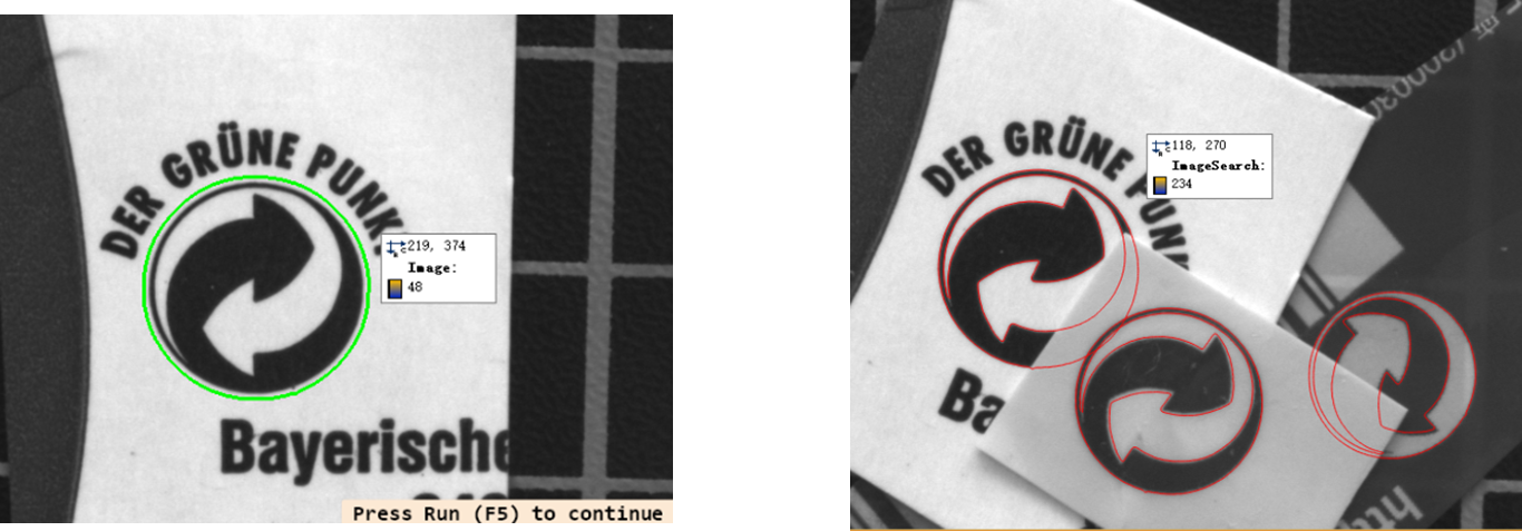 find_shape_model(Image : : ModelID, AngleStart, AngleExtent, MinScore, NumMatches, MaxOverlap, SubPixel, NumLevels, Greediness : Row, Column, Angle, Score)