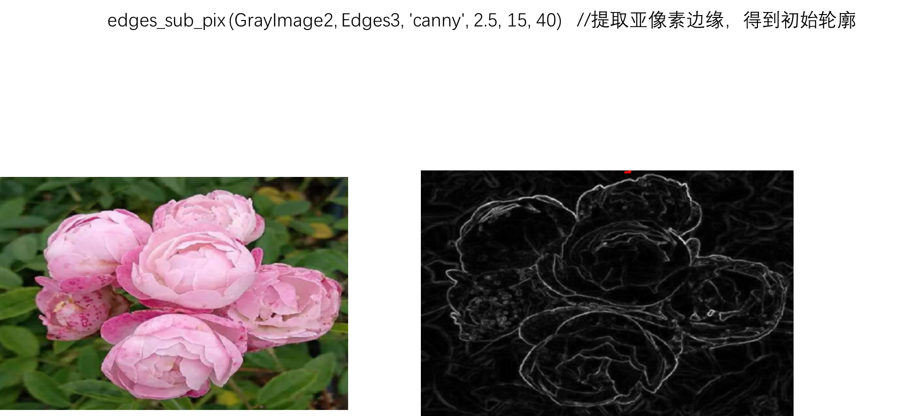 edges_sub_pix (GrayImage2, Edges3, 'canny', 2.5, 15, 40) //提取亚像素边缘,得到初始轮廓