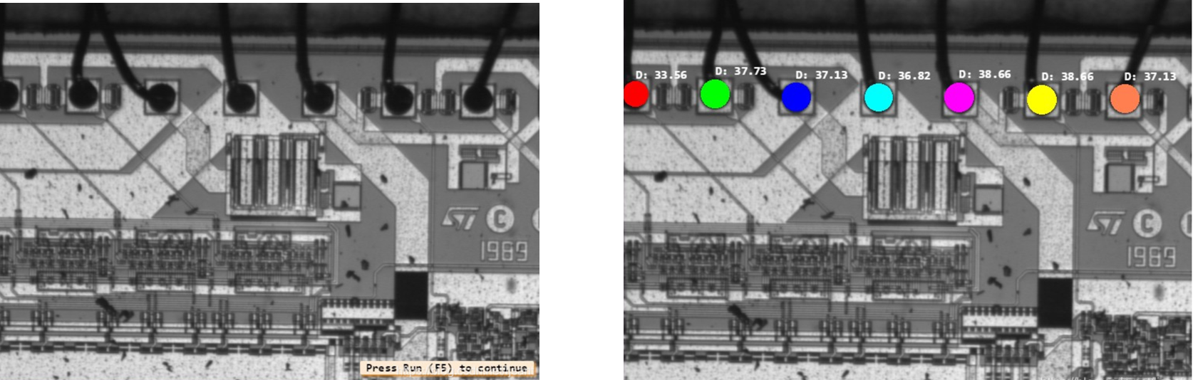 四、决策执行:基于提取的特征进行逻辑判断并驱动外部设备,例如通过模板匹配对比目标与预存模板判断是否合格,利用尺寸测量功能计算孔径、长度等参数引导机械臂定位,或通过基准对比标记检测图像与良品的差异区域以识别缺陷
