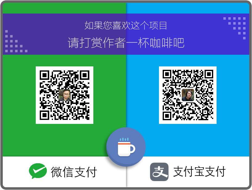 NanUI 项目基于 LGPL-3.0 协议的开源项目并且它是完全免费的。尽管如此,如果没有适当的资金支持,项目维护和新功能的开发是无法持续下去的。所以如果你喜欢这个项目并认可我的工作,你可以支付我一杯咖啡的钱请我喝一杯咖啡,或者你也可以成为长期的项目资助人以帮助 NanUI 变得更好。