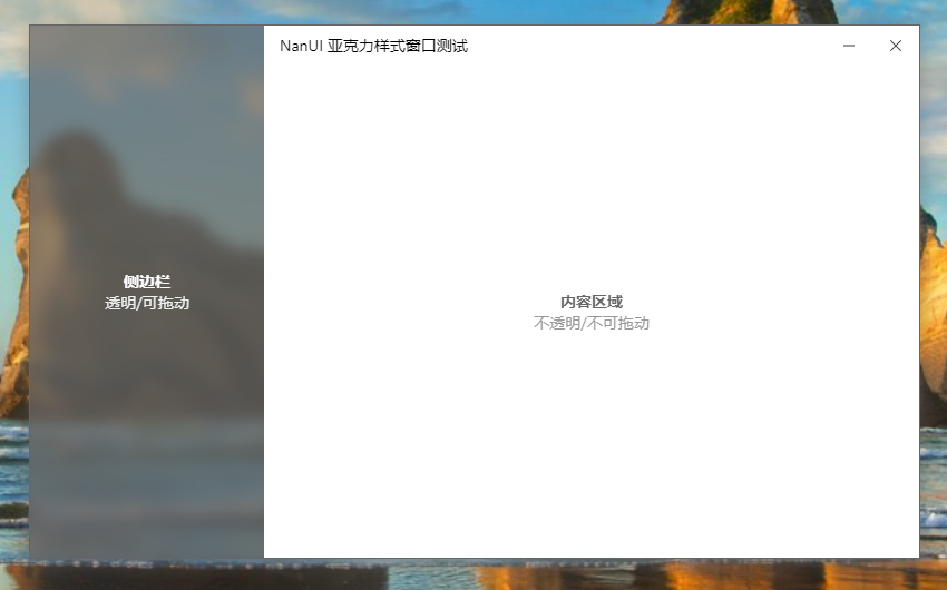 亚克力特效是 Windows 10 创意者更新版之后提供的新功能,它允许窗体的透明或半透明区域与桌面元素进行模糊混合,实现特殊的磨砂亚克力效果。与 Layered 样式相同,根据网页中透明或者半透明区域的设置,将实现特定效果的磨砂玻璃效果。