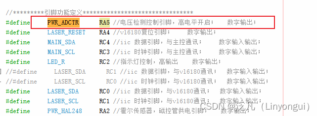 预留的电压检测电路,因未启用,所以只在初始化时使用PORTA寄存器将RA5配置为低电平,但是发现10%产品该引脚输出为高。在上图位置加上这个语句后,功能正常,不能理解的是为什么初始化的时候为什么有的会无效。在线求大神解惑