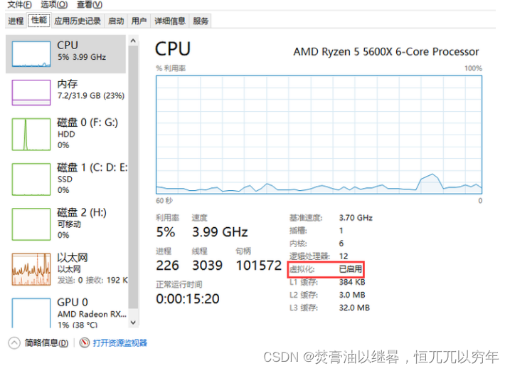 1. 开启CPU虚拟化,新电脑该默认是开启的,如果没开启可以根据自己电脑型号品牌搜索如克开启CPU虚拟化。当开启成功后可在设备管理器中看到。