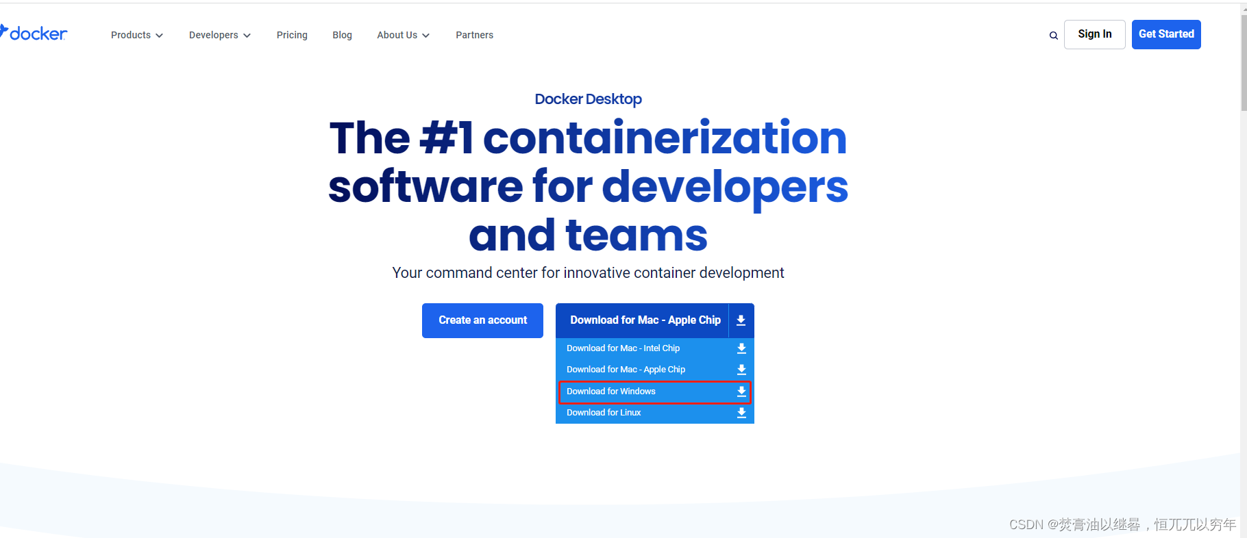 1. 从>> 官网地址 <<下载docker-desktop
