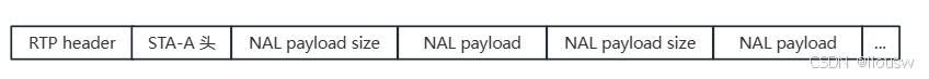 RTP header + STAP-A头 + 第一个NAL payload长度 + 第二个NAL payload + 第二个NAL payload长度 + 第二个NAL payload ....