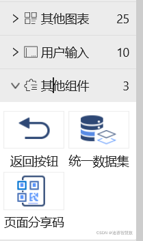 在平台组件列表的其他组件中,就可以找到返回按钮。当然也有其他丰富的组件,组件的结合能使大屏更加的美观。