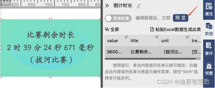 在简单配置中直接用鼠标单击单元格即可修改数据,修改完成后点击预览,即可查看到编辑后的效果。