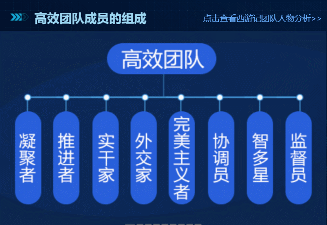 四大名著《西游记》,想必大家都看过。无论是齐天大圣孙悟空,还是天蓬元帅猪八戒,沙和僧卷帘大将,唐僧还是金蝉子,过去他们都是散漫的个体,都因为触犯天条才不得不去西天取经。尽管在西天取经的路上充满了争吵、冷战,但这样的一支队伍最终取得了西天取经的胜利。唐僧及其师徒三人所构成的小团队,毫无疑问是一支高效的团队。那高效团队由哪些成员组成呢?又该如何打造有效团队呢?