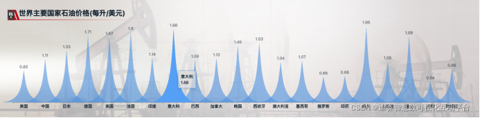 从图中可以看出来,全球石油价格最高的地区是中国香港,每升的价格是2.15美元,约合13.6865人民币每升。全球平均汽油价格为约1.32 (美元) 每升,而中国为1.1 (美元) 每升与国际平均油价接近。