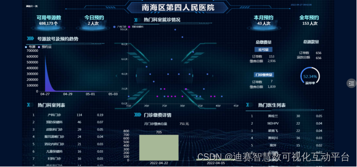 现在,如果想进入不同机构看下具体的数据,如数据趋势、数据统计,或者结构内部不同科室的数据,当我们进入机构详情页面,可以看到如下这样的展示方式,当然,也可以是其他的展示内容,如果还想更详细的展示机构内不同科室的数据,我们可以设计更深入一级的页面来展示科室的数据。