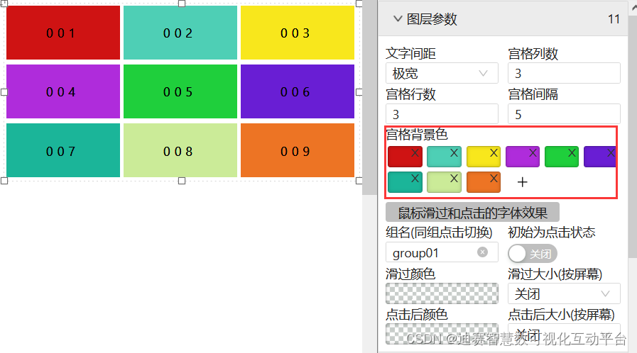 宫格背景色:初始为每个格子不同色,背景色数量为0。当需对格子背景色自定义,需添加9个背景色。
