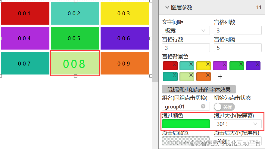 滑过颜色、滑过大小:当鼠标滑过格子内文字,会暂时改变字体颜色和大小。