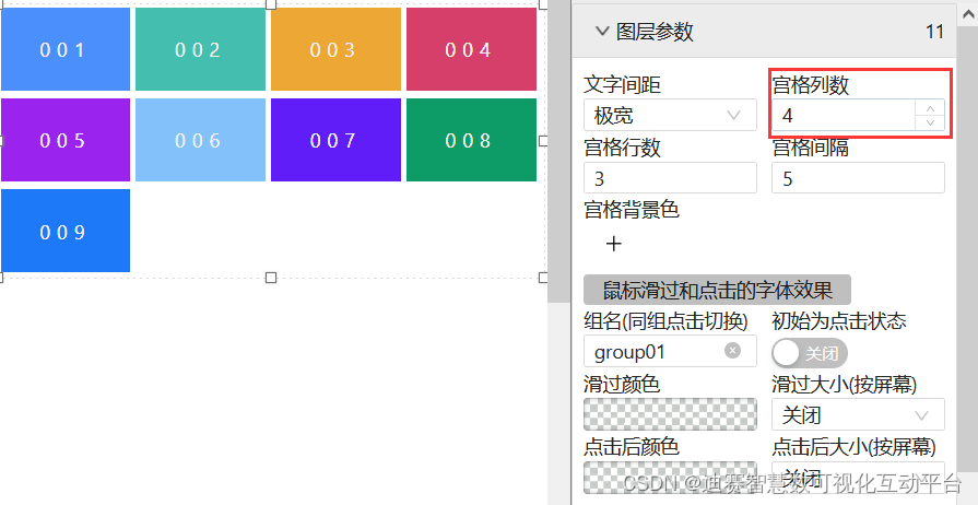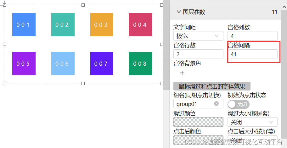 宫格间隔:初始值为5,格子的上下左右距离,当数值过大时会造成格子偏小。