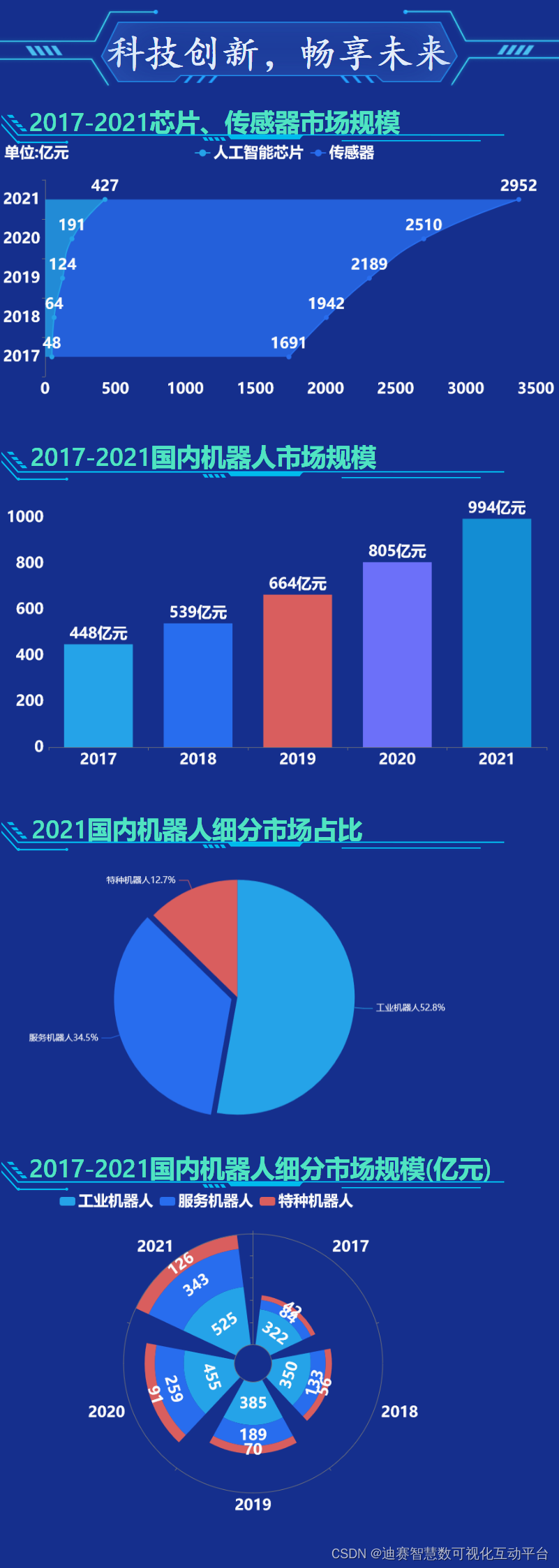 近年来在疫情的影响下,机器人行业迎来了火箭式的增长,在各个领域都成长出一批企业。下面跟随小编来了解下机器人行业的市场规模,数据皆由网络公布,由数据可视化软件制作。