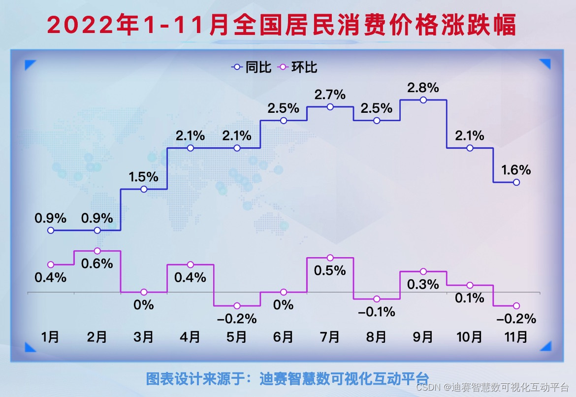 11月份全国居民消费价格同比上涨1.6%,环比下降0.2%。食品价格下降0.8%,其中鲜菜价格由涨转跌,猪肉价格涨幅扩大至51.8%。非食品价格保持稳定。