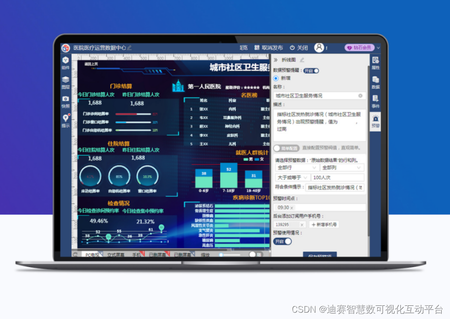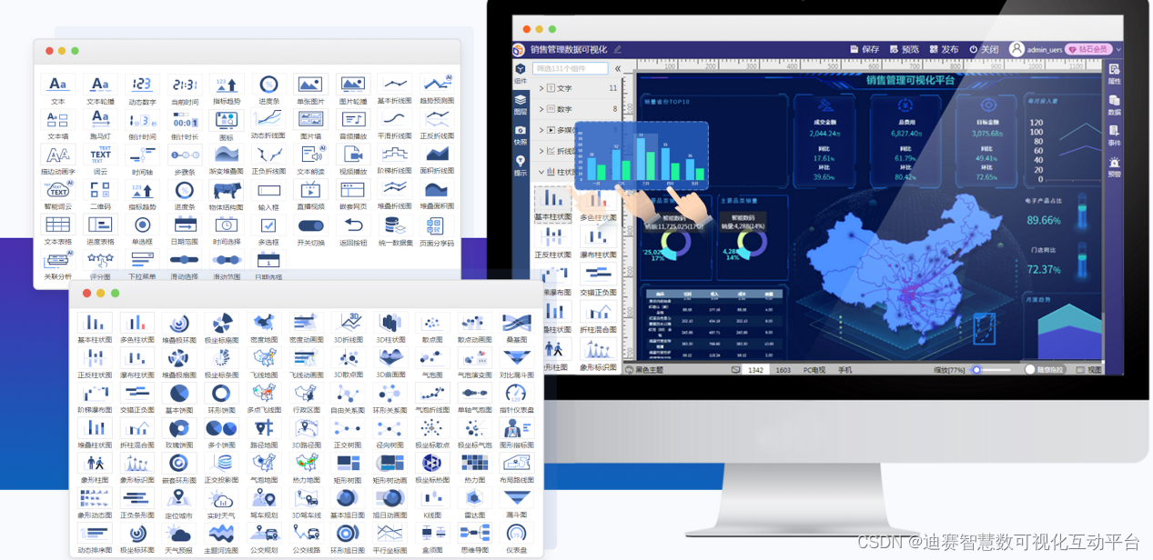 目前平台支持10类68种组件;6类公共属性以及个性属性、支持多种数据库文件以及数据库。指标预警多屏互动让您的数据更好的呈现出来,国产化更是保护了您的数据安全。