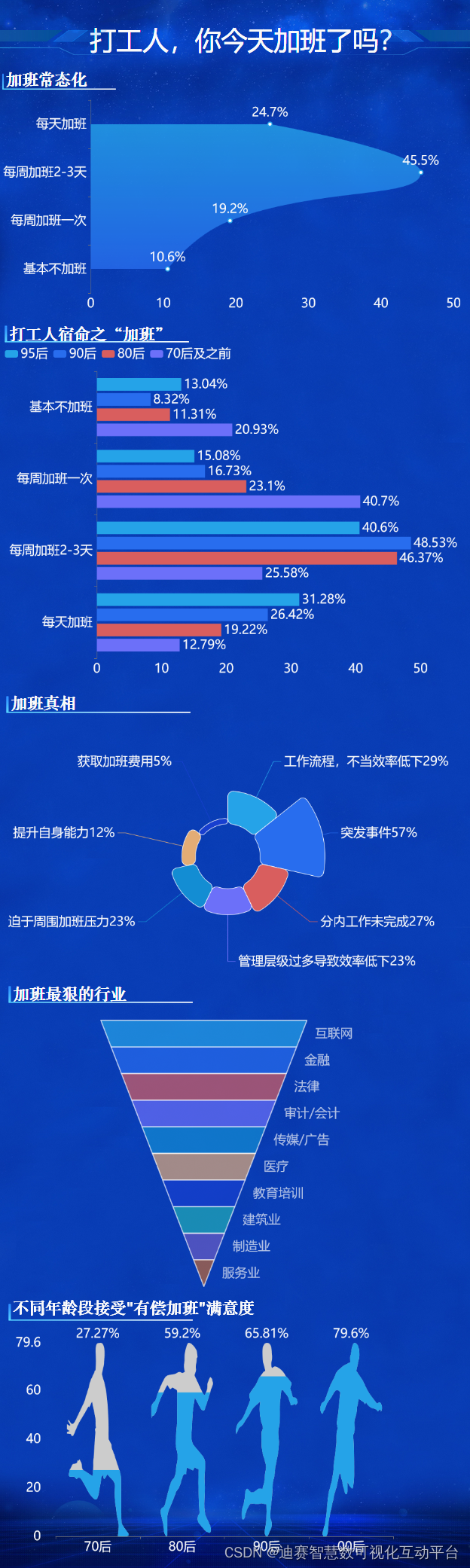 下面小编也是从网络上获取到部分有关加班的数据,通过数据可视化软件处理,希望可以帮助大家更好的了解。
