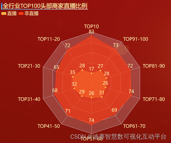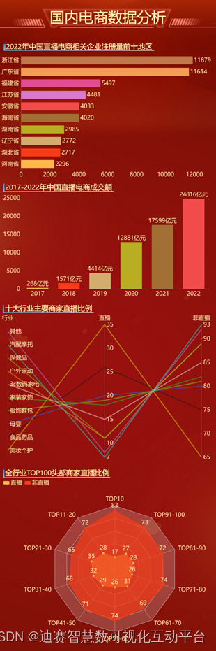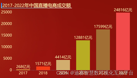 直播带货是线上销售模式的一种,由衷是为了更好的把商品展示给用户观看,增加商品游览率,也可使用户更加全面了解商品是否符合自己的要求,也相对减少了客服的工作量。这边小编也是收集了一些直播电商的相关数据,通过数据可视化软件转化为数据可视化图,以此方便大家观看。