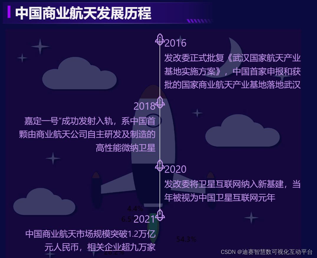 近年来,中国商业航天的发展步伐更加加快,2021年时市场规模已突破1.2万亿元,相关的企业超九万家。未来,中国商业航天仍将面临一系列挑战和机遇。如何进一步提高商业卫星的质量和技术,如何降低成本,如何探索更广泛的商业化应用等都是需要思考和解决的问题。下图是近几年中国商业航天的发展历程。