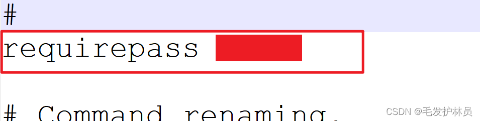 3、找到requirepass属性,打开注释,设置自己的密码